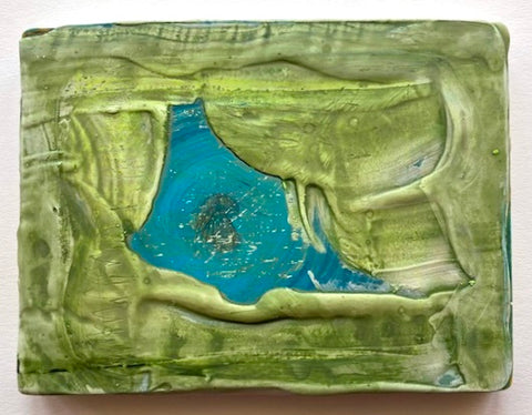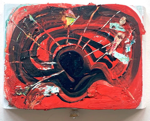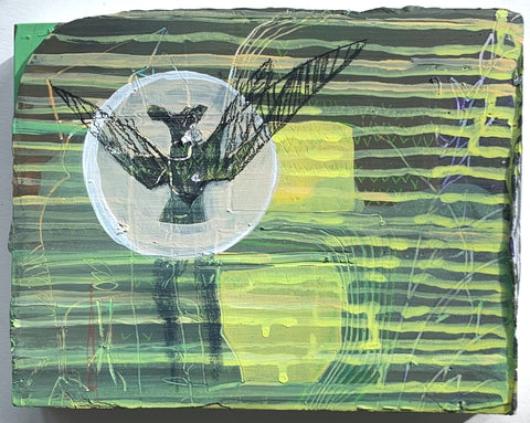 Philippa Beardsley, Experiment, acrylic, spackle and pencil on wood and deconstructed cigar box, 4.75" x 6"