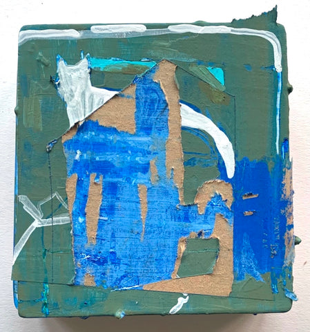 Philippa Beardsley, Blue Opening, acrylic and plaster on wood and deconstructed cigar box, 7 1/8" x 9 3/8"