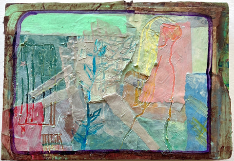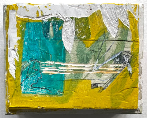Philippa Beardsley, Paper Patches, acrylic, paper and pencil on wood and deconstructed cigar box, 6.5" x 9.25" SOLD