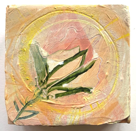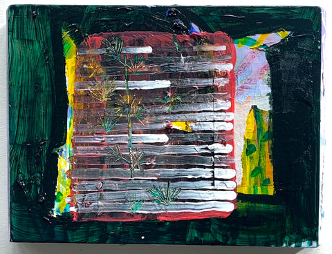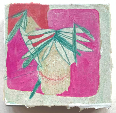 Philippa Beardsley, Upside Down Flower, acrylic, paper and pencil on wood and deconstructed cigar box, 6.25" x 6.5"