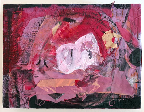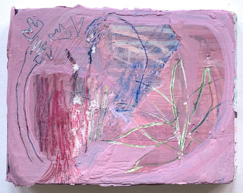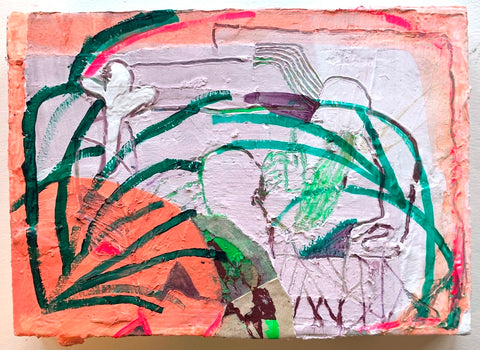 Philippa Beardsley, Crush on You, acrylic, paper, plaster and pencil on wood panel, 14" x 21 1/8"