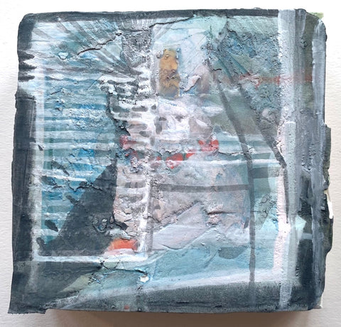 Philippa Beardsley, Separation (In Order to See In or Through), acrylic, spackle and pencil on wood and deconstructed cigar box, 5.5" x 5.5"