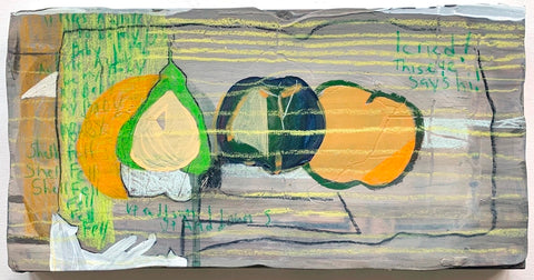 Philippa Beardsley, Shell Fell, acrylic and pencil on wood and deconstructed cigar box, 6.75" x 13.25"