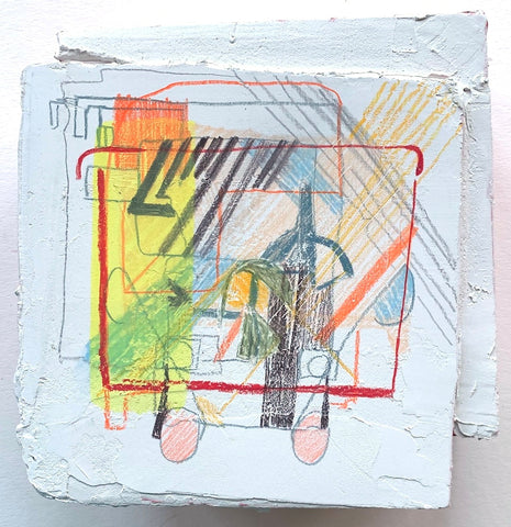 Philippa Beardsley, Untitled (Bus), acrylic, spackle and pencil on wood and deconstructed cigar box, 8" x 7.75"