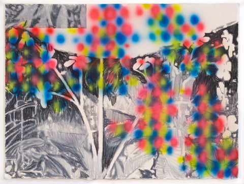E.J. O'Hara, Springtime for the Other Crowd, acrylic and spray paint on paper, 30" x 22" SOLD