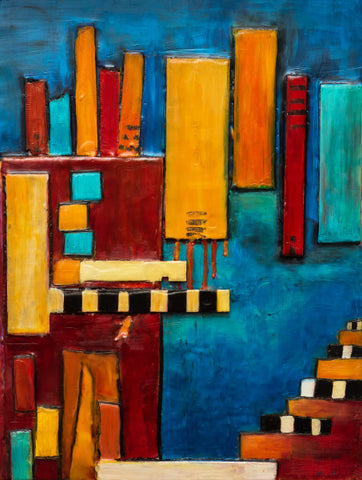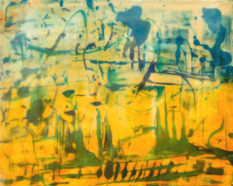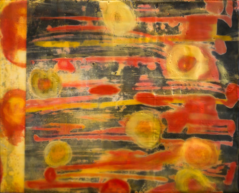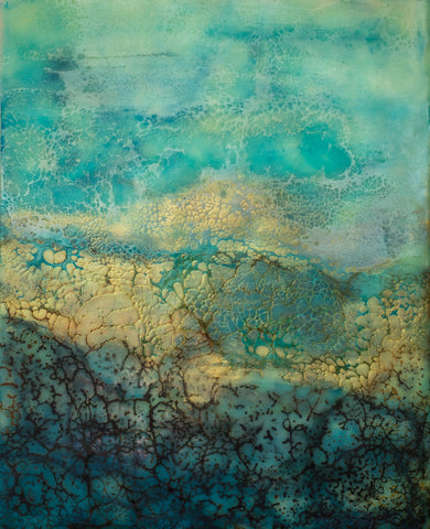 My Hometown, encaustic mixed media, 18" x 24" Available