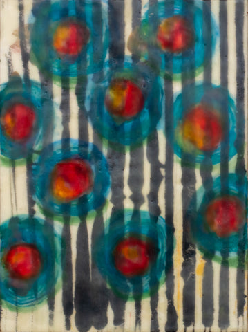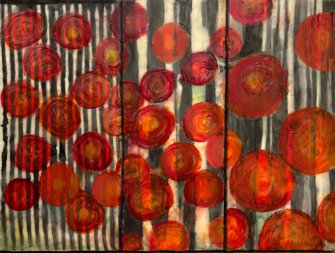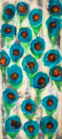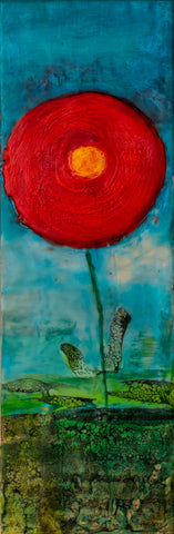 Poppies 1, mixed-media, encaustic and collage on panel, 18" x 9" SOLD