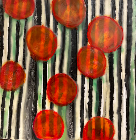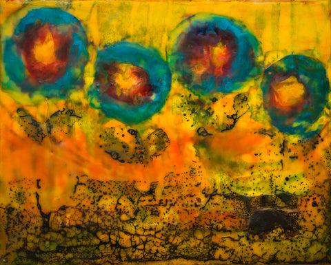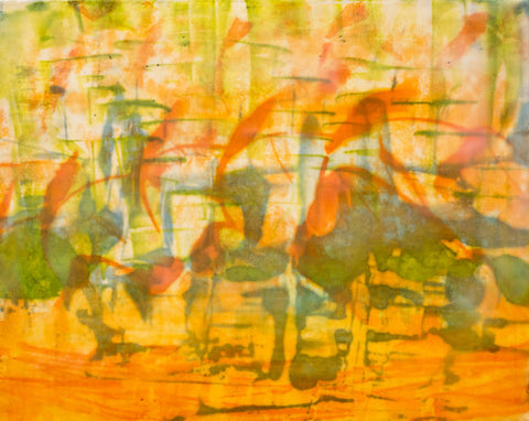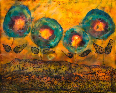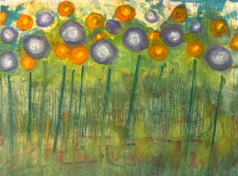 Purple and Orange Poppies, encaustic monotype, 16" x 20"