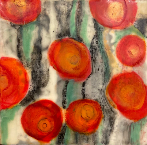 Amapolas (Poppies), mixed media, 10" x 10" SOLD