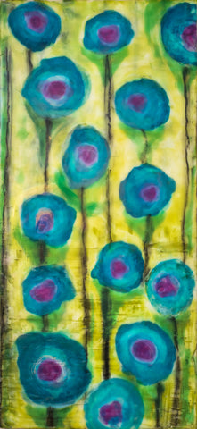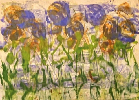 Purple Flowers, encaustic monotype on paper mounted on panel, 18" x 24" SOLD