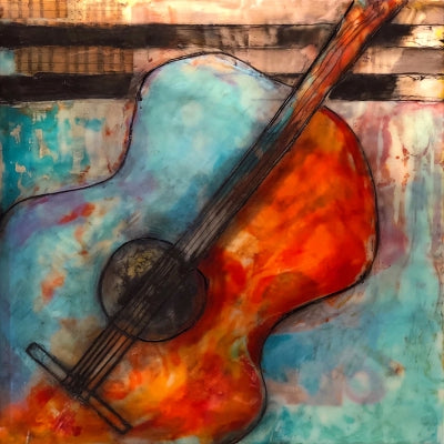 Let's Make Some Music, encaustic mixed media, 10" x 10"