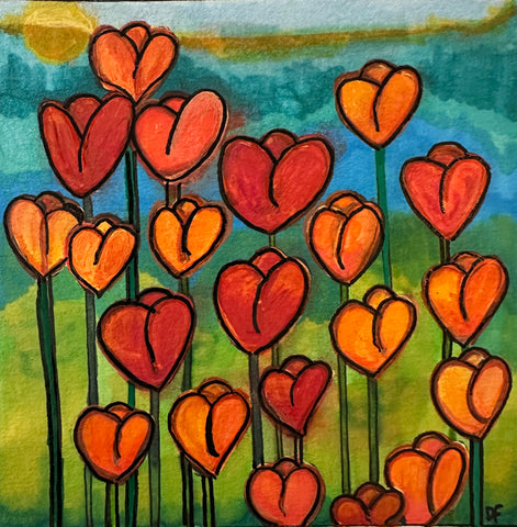 Spring Poppies, acrylic on paper, 6" x 6" Available