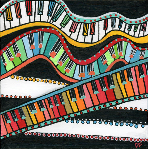 The Keys Keep Dancing, mixed media, 8" x 8"