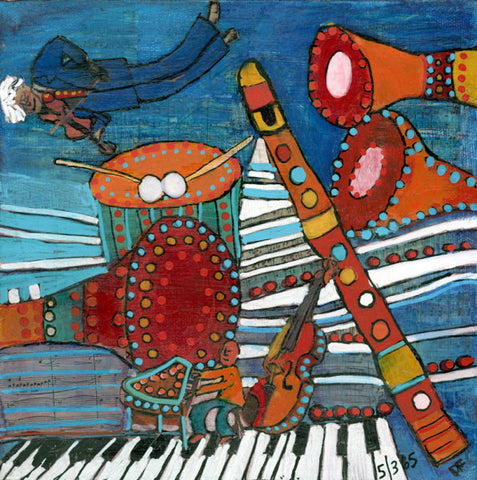Musica en el Sol, mixed media, 8" x 8" SOLD