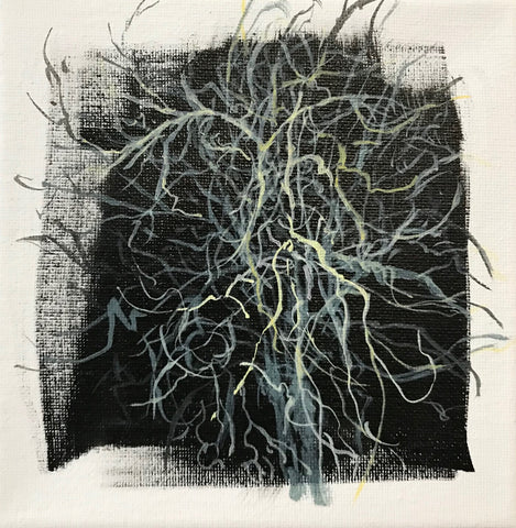 Canal Tree in January, acrylic & ink, 6" x 6"