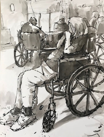 Waiting, ink, 10.5" x 8.5"