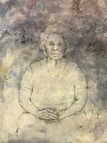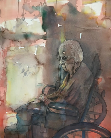 Lanie in the Memory Care Unit, gouache and charcoal and pastel, 13" x 10"