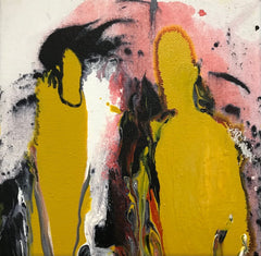 Ending, poured acrylic, pastels, 36" x 28"