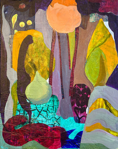 Nancy E. Cooke, October's Dance, acrylic and mixed media on panel, 12" x 12"