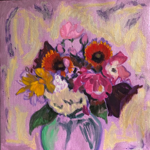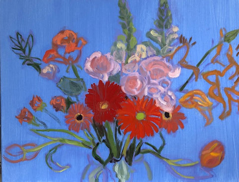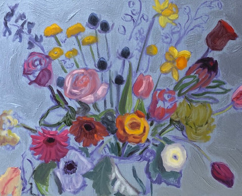 Peggy Merves, Random Bouquet, oil on flashe ground on canvas, 16" x 20"