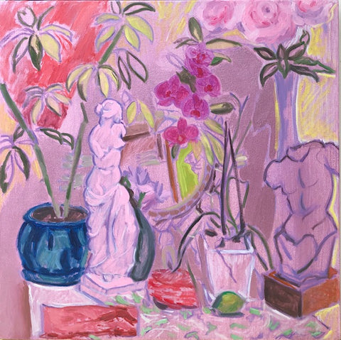 Peggy Merves, Pink Summer Song, oil on flashe ground on canvas, 24" x 24"