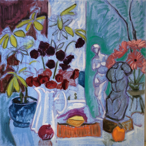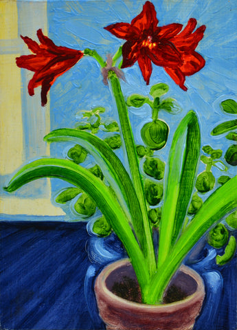 Sarah Roche, Studio Plants, oil on wood panel, 10" x 7.25"