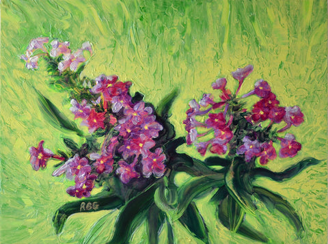 Sarah Roche, Phlox for RBG, oil on panel, 12" x 16"