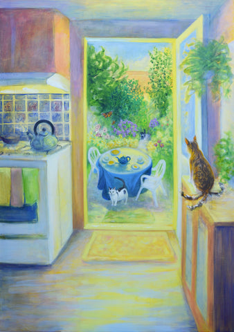 Nancy E. Cooke, Al Fresco, acrylic and mixed media on panel, 14" x 11"