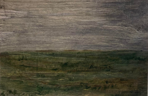3 Scapes, wood rubbing enhanced, 23" x 47"