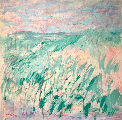 My need to become part of the land and breathe its rhythm is my soul’s search for peace. This search is my process in art. I am forever learning to be more present — fully mindful and engaged in nature’s timing and energies. My instinctual use of color brings an integrity to the process and creates a spontaneous feeling for the ephemeral.