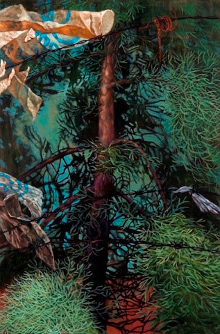 Zahn, Pines with Garden Hose, mixed media, 16" x 16"