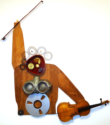 Record Breaking Music, found objects on canvas, 30" x 41" x 4"