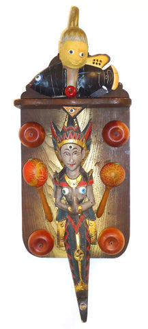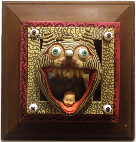 Here Kitty, Kitty, Kitty ... found object assemblage, 22.5" x 15" x 4"