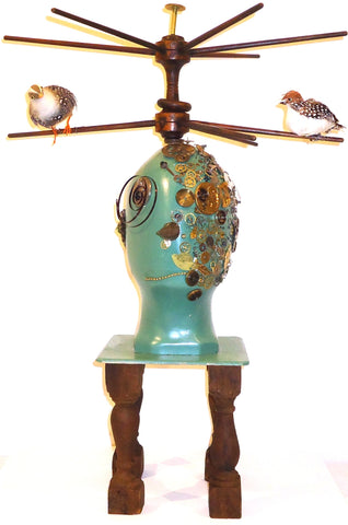 Bird Brained, found object assemblage, 7.5" x 22" x 13"