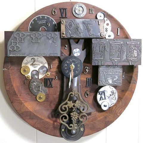 Tick, Tick, Tick ... found object assemblage, 38" x 12" x 5"