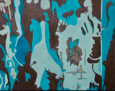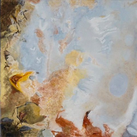 Escaping, encaustic paint-stick on wood, 12" x 12" SOLD