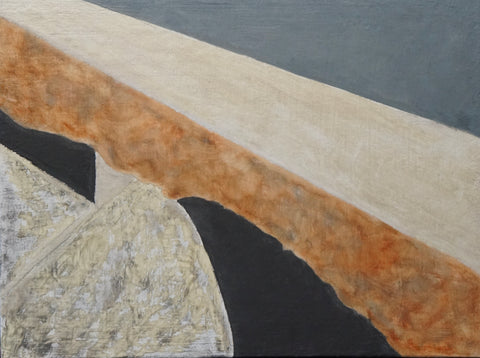 Bridging, encaustic paint stick on wood, 11" x 14"