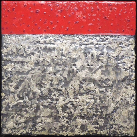 Red, Hot Snow, encaustic paint-stick on wood, 12" x 12" SOLD