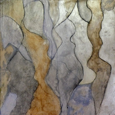 Rain Dance, encaustic paint stick on wood, 12" x 12"