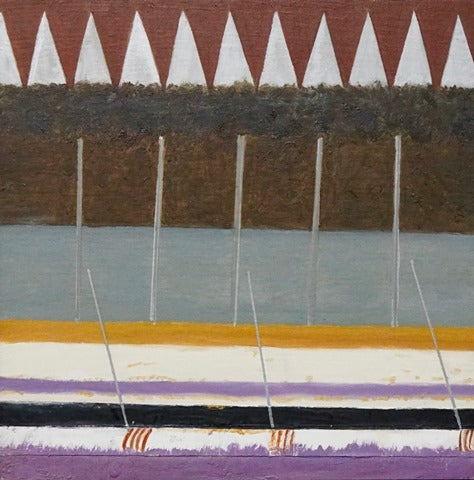 Drum Dance: At Rest, encaustic paint stick on wood, 11" x 14"