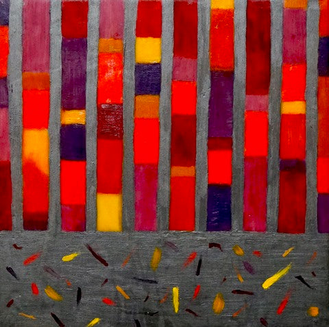 Tines of Color, encaustic paint-stick on wood, 12" x 12" SOLD