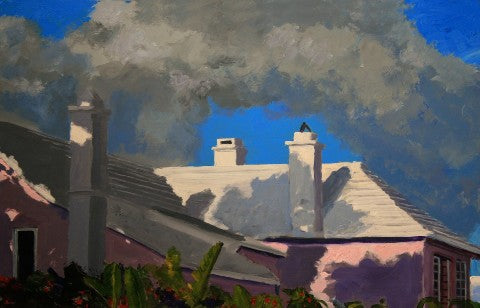 Joseph Sweeney, Bermuda Chimneys, acrylic on museum board, 14" x 22"