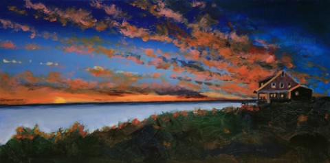 Joseph Sweeney, Cape May Light at Night, oil on museum board, 12" x 24" SOLD
