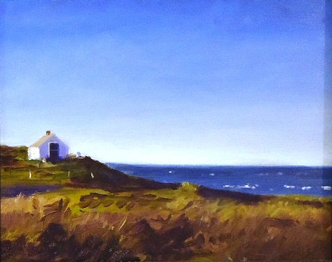 Joseph Sweeney, Cape May Blue, oil on silk, 9" x 12"