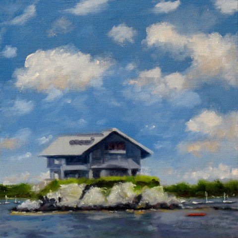 Joseph Sweeney, House on the Rocks - The Dumplings (Newport, RI), oil on linen panel, 12" x 12"