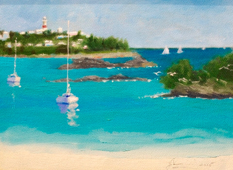 Joseph Sweeney, Turtle Bay, St. David's Light, oil on watercolor paper, 9" x 12"