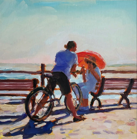 5 O'Clock Chat, oil, 12" x 12" Available