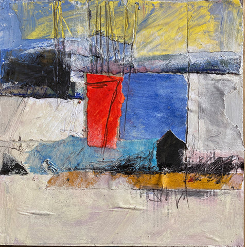 Invented Landscape 2, mixed media collage mounted on board, 10" x 10" SOLD