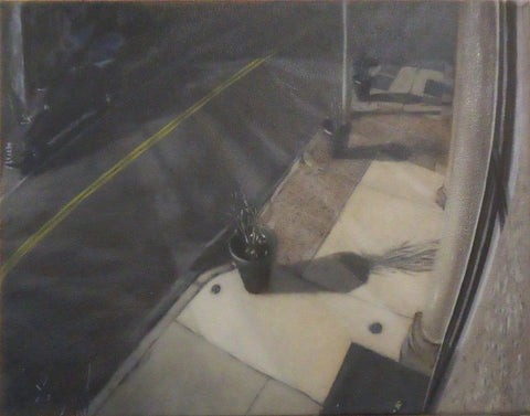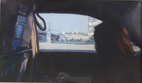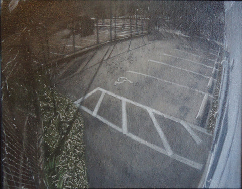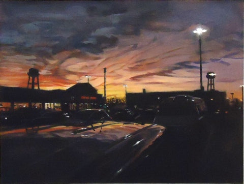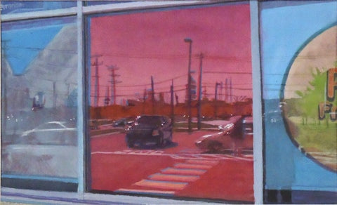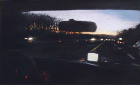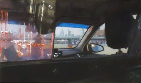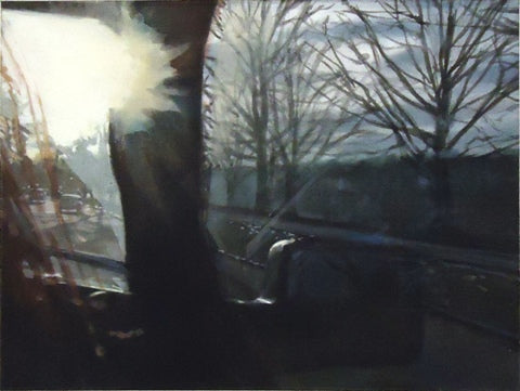 My subjects arrive through my daily travels, when the aesthetic possibilities of ordinary places are suddenly made apparent, either due to some change in light or my state of mind. I’m more susceptible to these visions when my defenses are down. I capture these fleeting moments through photographs and develop them through painting. By allowing their essence to emerge over an extended time, mundane views of parking lots, car windows and reflective storefronts are transformed into something majestic and strange.