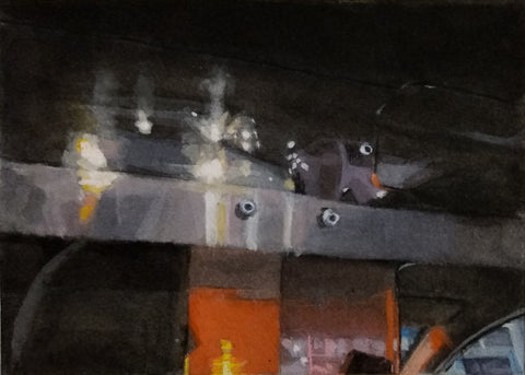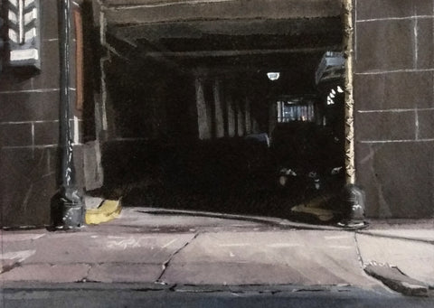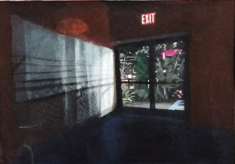 Night Exit, ink, watercolor & gouache on paper, 5" x 7" SOLD